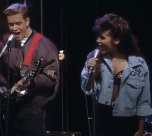 It’s interesting that Kelly is the lead singer because everyone sings about the same amount except for Screech. They don’t let Screech sing. But some crazed fans do run up on stage and rip his clothes off. Ew.