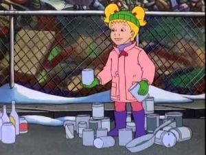 In her haste, Wanda drops the nutcracker on the classroom floor as they head to the recycling plant. Arnold mistakes the nutcracker for recycling (idk how) and puts it in a bin. (Cue the drama.)