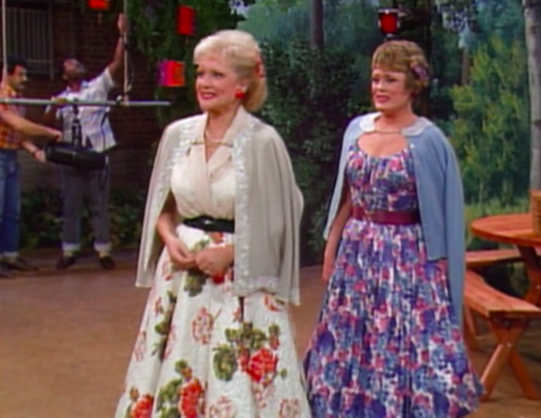 Ricky play the romantic lead and Lucy plays the “queen of the gypsies” whose solo song is drowned out by a chorus of much better singers — much to Lucy’s chagrin. Unfortunately, we don’t get to see the full production because Lucy paid for all the costumes and set pieces with a post-dated cheque. Annnd everything gets repossessed mid-production. That said, the set pieces are truly beautiful and we do get to hear some of the wonderful music as composed by series composer Eliot Daniel. I would almost have awarded I Love Lucy the point for costumes…but…The Golden Girls knocked it out of the park on this one.