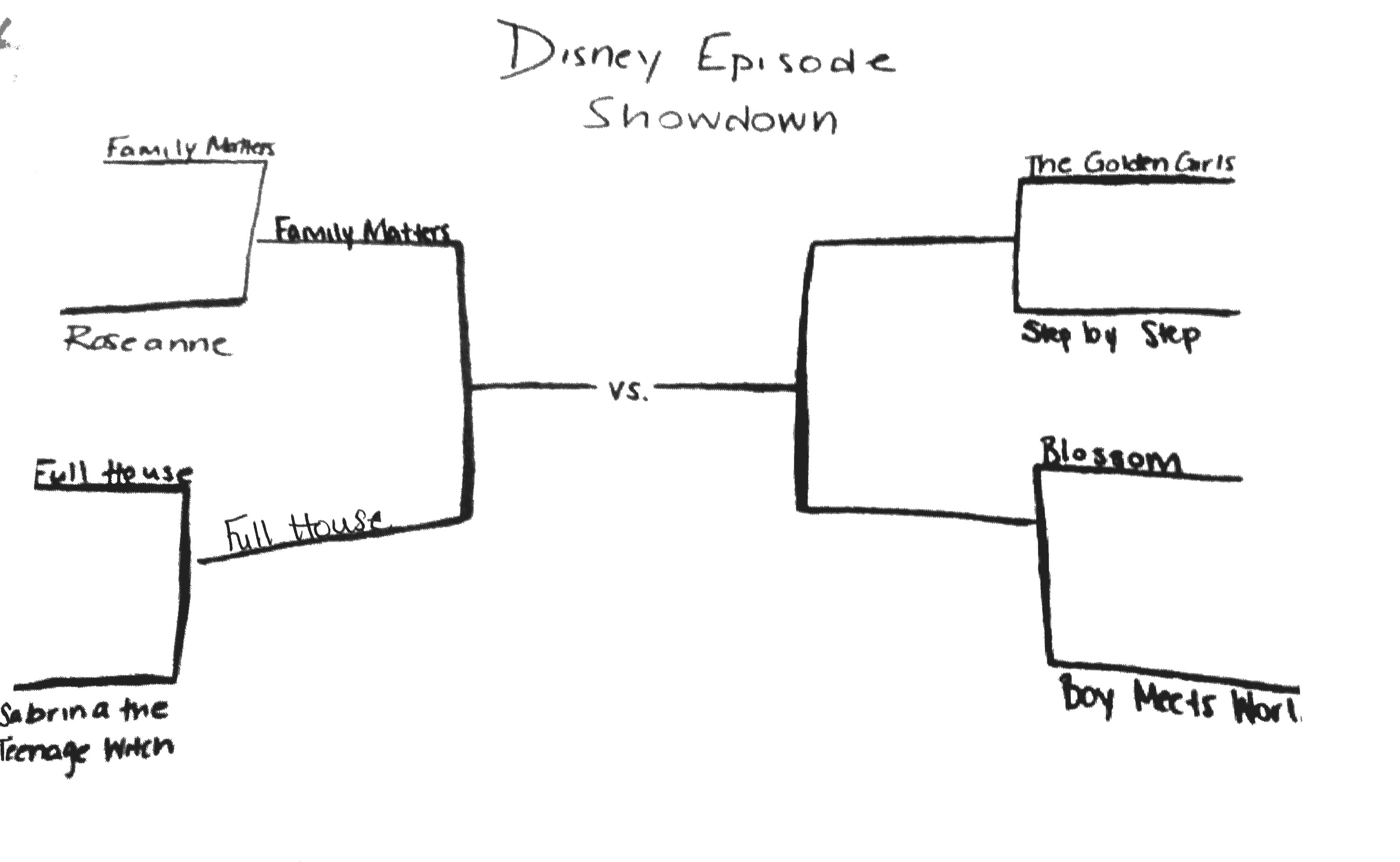 Our first matchup will be Family Matters vs. Roseanne on January 8th. So take a few moments, pick your favorite episodes, and fill out your brackets!