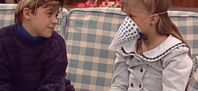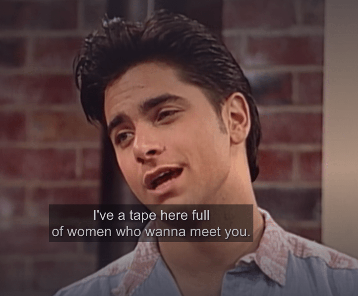 They pretend to be sophomores in high school even though they are thirteen. But when DJ and Kimmy Gibbler show up, they recognize the boys from their school as total sleazeballs who drilled a hole in the girls’ locker room. But for some reason, even with the knowledge that these two dudes are juvenile sexual predators, DJ and Kimmy go along with Stephanie and Gia pretending to be three years older than they are.