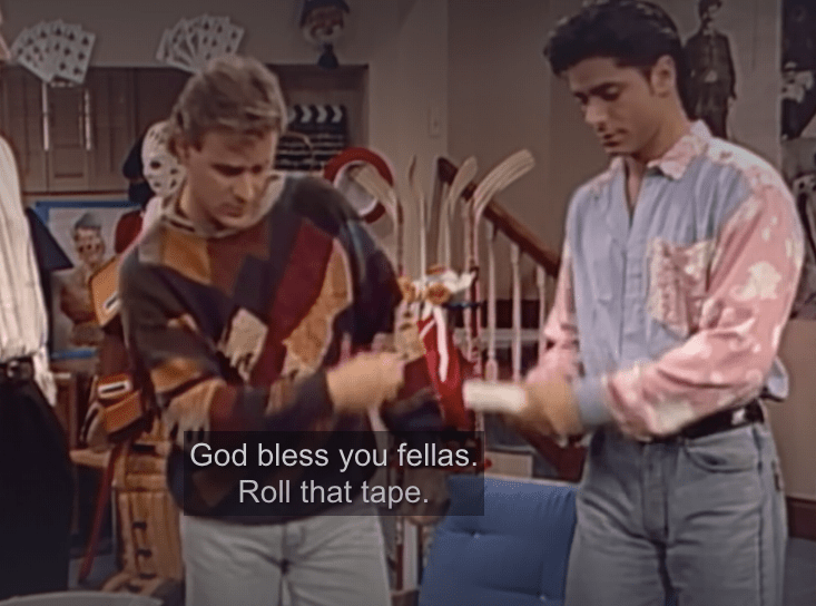 We also get to hear Joey do a very poor Marlon Brando impression when Jesse asks him to be the baby’s godfather. Danny gets pretty touchy about not being offered the godfather-ship. So the three guys start arguing about how much Danny saved them in rent over the years vs. how much they saved him in baby-sitting. (It’s San Francisco real estate dudes, you got the much better deal.) But Danny goes for the jugular when he tells Jesse that Forever is “not [his] favorite song.” Well, we were all thinking it… Joey (who is also upset because Jesse tried to placate Danny by telling him he could be the godfather instead of Joey) agrees with Danny. So Jesse tells Joey that Mr. Woodchuck sucks. THANK GOD WE ARE FINALLY ADDRESSING THIS! Then Joey tells Jesse that the only reason people watch “Wake Up USA” is because they want to watch Becky. Ouch. I mean. Hm. This one feels hurtful where as the others were like things that NEEDED to be said. This is Danny’s whole career! It’s not one dumb song or puppet!