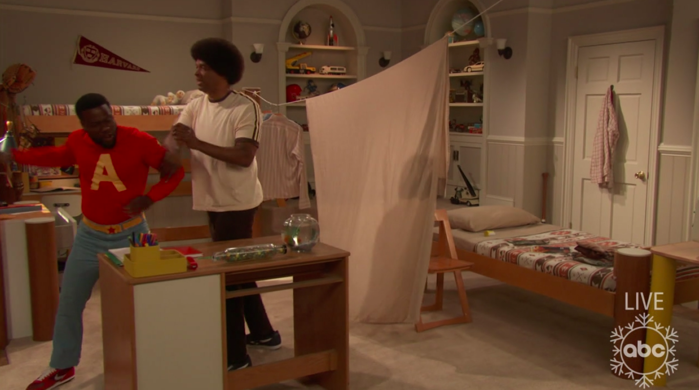 Our hosts for tonight’s episodes are Jimmy Kimmel and the great Norman Lear (who by the way looks amazing at 99). What’s interesting about both of these episodes is that the characters are all played by adults who probably grew up watching these shows when they originally aired — a fact that I find very charming.