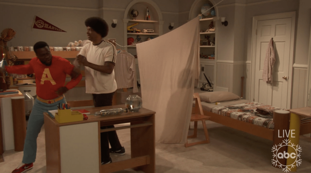 We’re only like five minutes into the show at this point, but I feel like it’s much stronger than the episode of The Facts of Life. John Lithgow is a really good choice for Mr. Drummond and all of the actors are playing it straight. No one is hamming it up — except for Hart as “Super Arnold” but that’s literally within the character’s description so it’s appropriate.