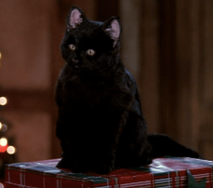 Sabrina is very upset with Salem because he ruined her favorite Christmas sweater. (Um, she’s a WITCH why can’t she just zap it back to perfection?) When Salem won’t say he’s sorry, the family leaves him alone to reflect on his actions (which no cat has ever done ever.)