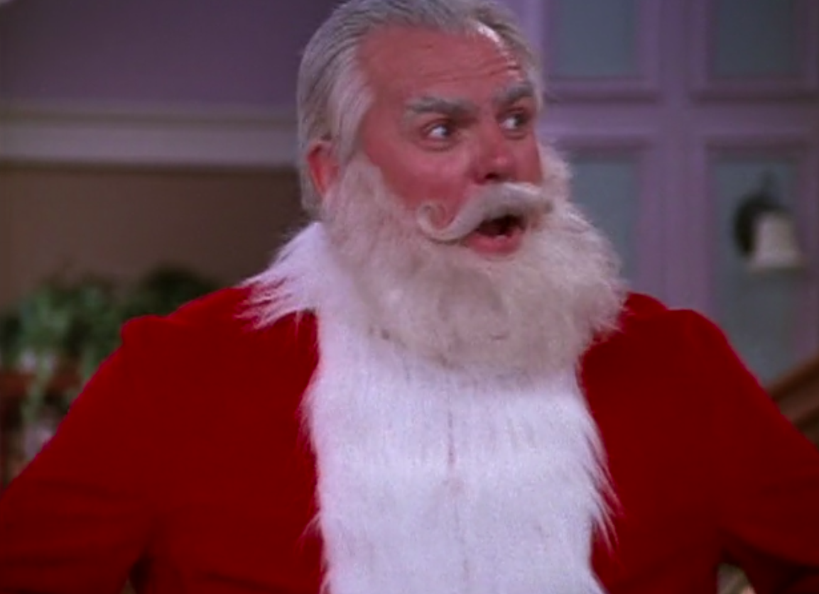 Sabrina then tries to open some presents to make herself feel better, but they all suddenly disappear. Apparently, presents make egotitis worse. So you can’t have them when you have the affliction. Her aunts decide it’s time to call in the big Christmas Sprit guy from the other real — Bob. Bob is…well…Cliff Claven.