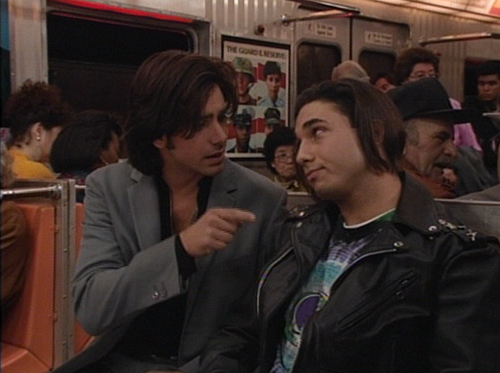 And suddenly, the entire Tanner family is transported to Brooklyn. Even the guy they yell at for littering seems like he’d be more comfortable in Bay Ridge than by the Golden Gate Bridge. We cut away to Kimmy babysitting the twins, and then cut back to what looks like a D train going through a tunnel. Then the train stops due to an electrical problem and Jesse freaks out that he’s going to be late for his commencement. I mean, I think he should be more freaked out by the fact that he left Gerard Street ten minutes ago and somehow ended up in the Bronx, but you know, to each his own. And more importantly, what’s up with this 6 Diamond and how did the Tanners get to the east side? Just a couple of years in New York City ruined all establishing shots of public transportation for me.